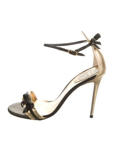 René Caovilla Leather Sandals Gold & Metallic Multistrap & Buckle Closure at Ankles Includes Box Unfortunately, due to restrictions, this item may not be eligible for shipping in all areas. | René Caovilla Leather Sandals in Gold/Metallic, Women's IT 39.5 | 9.5