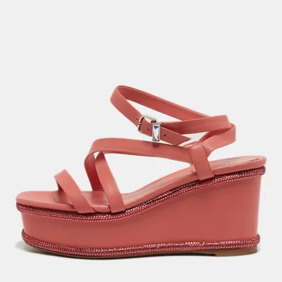 Pre-owned Size 37 Pink Leather Wedge Sandals