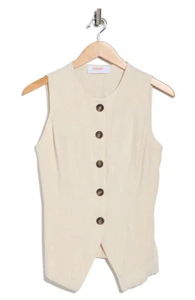Bring a polished touch to any outfit with this longline vest cut from airy, linen-kissed fabric. 26" length Front button closure Jewel neck 70% rayon, 30% linen Machine wash, line dry Made in the USA of imported fabric
