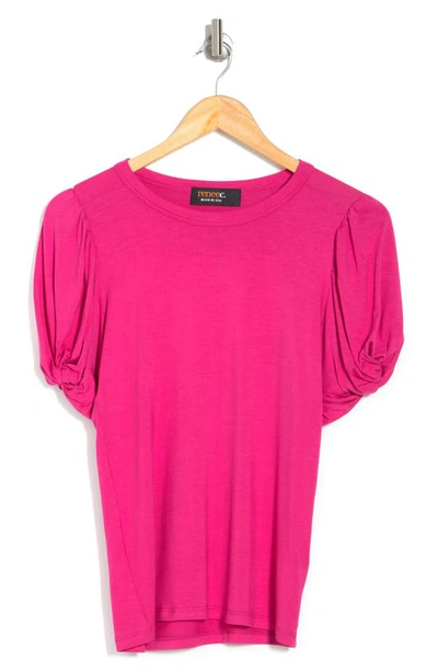RENEE C Solid Scrunched Sleeve Top In Fuchsia