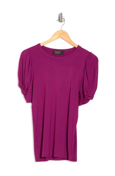 RENEE C Solid Scrunched Sleeve Top In Magenta