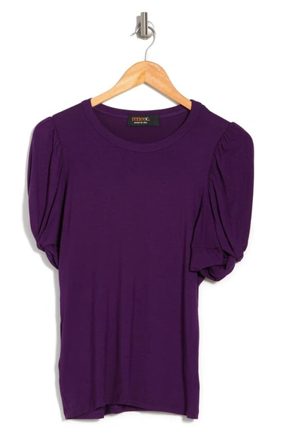 RENEE C Solid Scrunched Sleeve Top In Plum
