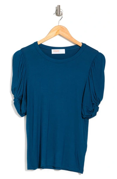 RENEE C Solid Scrunched Sleeve Top In Teal