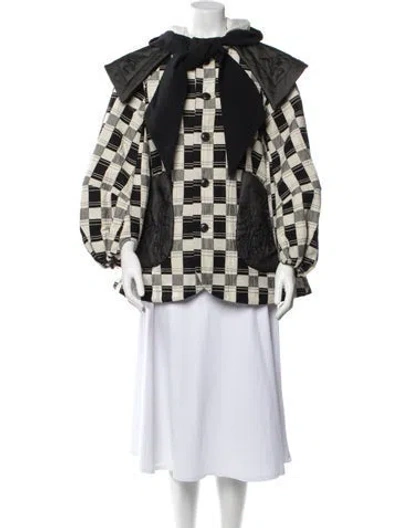 Renli Su Coat Neutrals Printed With Hood Pointed Collar Short | Renli Su Printed Coat in Neutrals, Women's S
