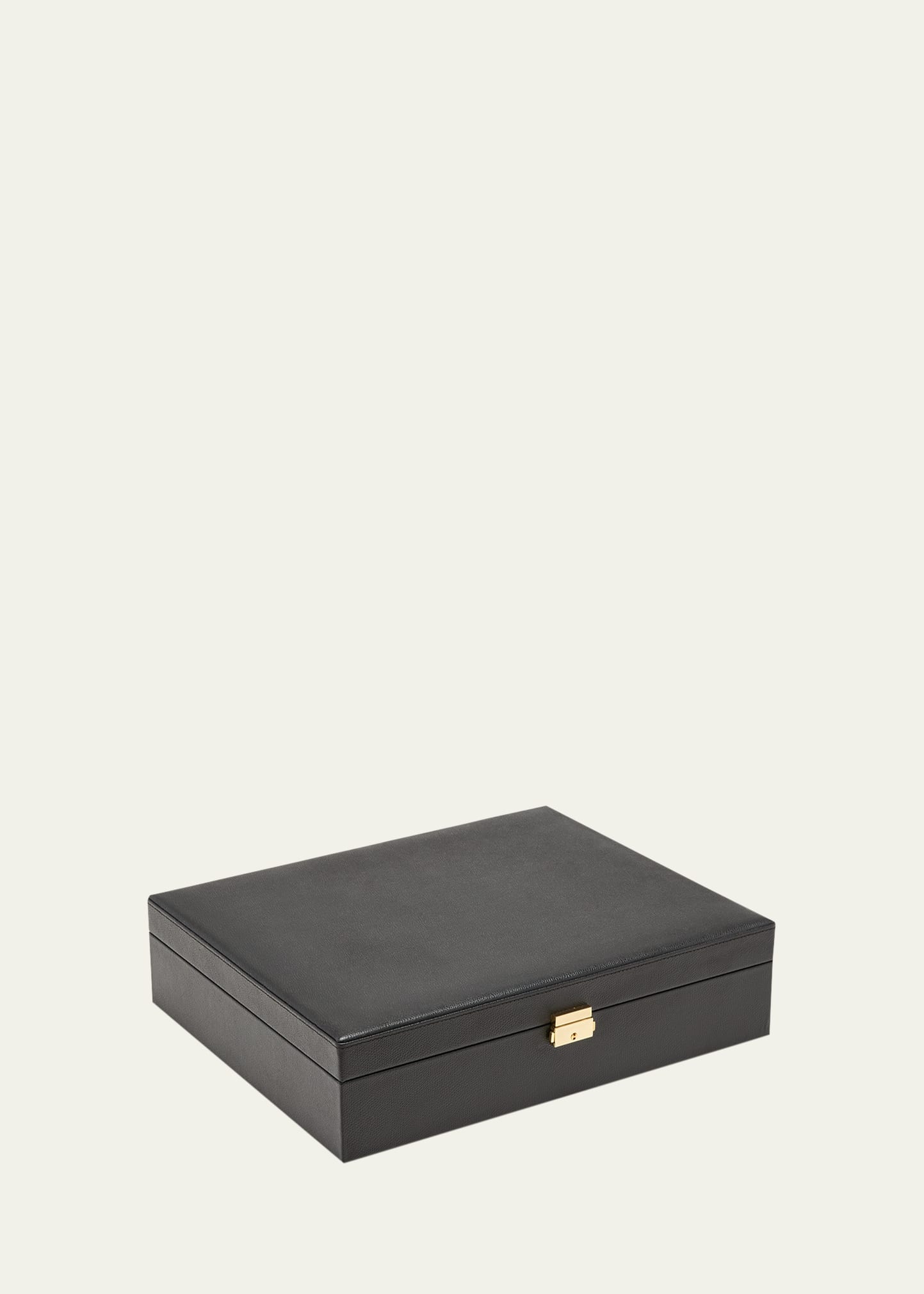 Includes 320 chips, two card decks, and one dealer bottom Handcrafted of leather, poplar wood, and PE plastic Approx. 14.6"L x 11.8"W x 3.5"T Item Weight (Lbs.): 16.8 Wipe clean Made in Italy
