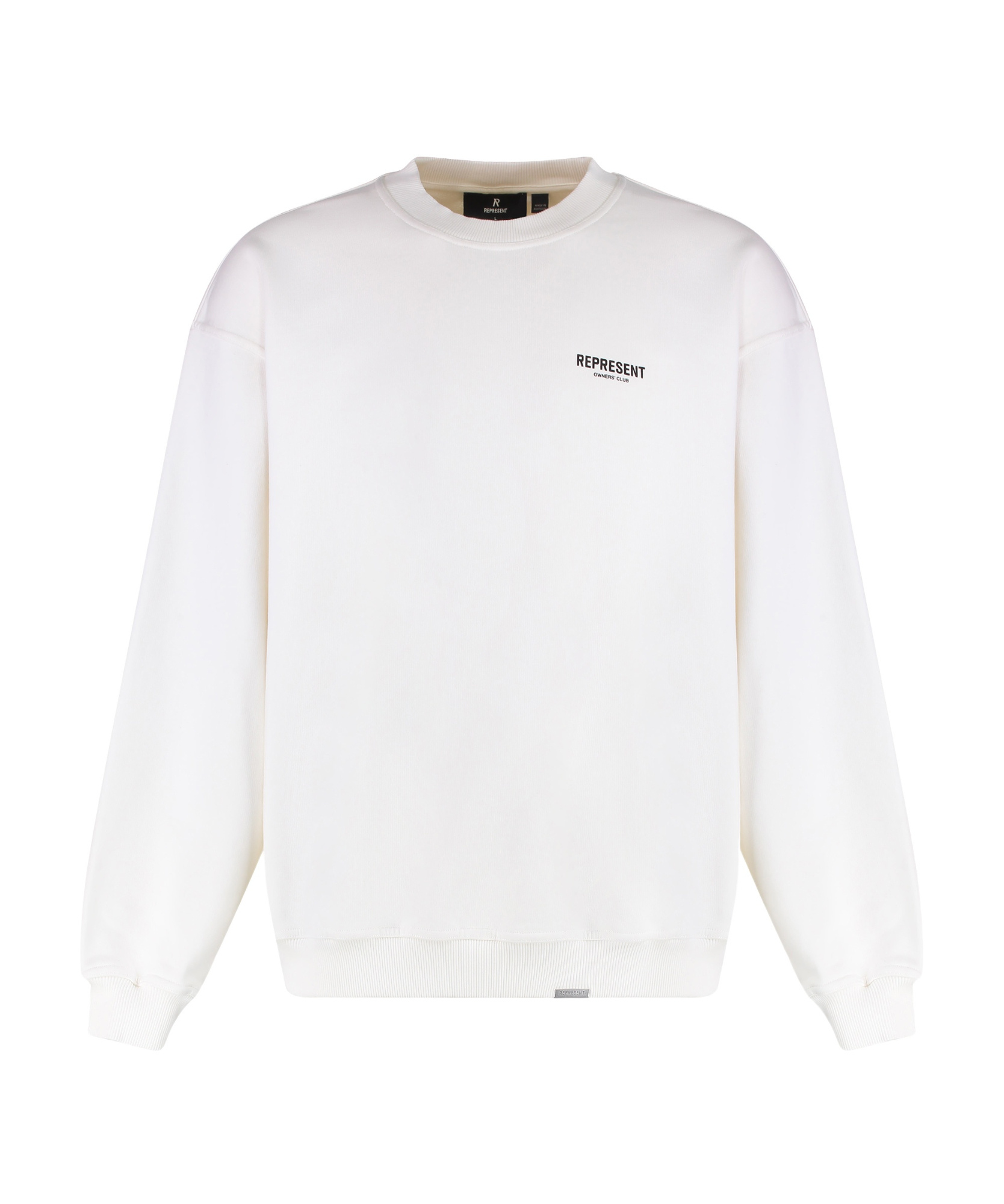 Represent Owners Club cotton T-shirt from REPRESENT featuring white/black, cotton, logo print at the chest, logo print to the rear, crew neck, long sleeves, ribbed cuffs and straight hem. When buying this unisex item, keep in mind that it is graded in standard men's sizing..