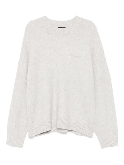 light grey crew neck drop shoulder ribbed cuffs and hem