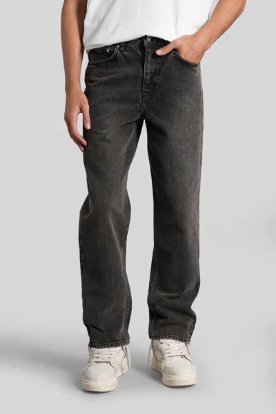 R2S split denim Jeans in grey cotton, zip and button closure, belt loops, five pockets, back embroidered logo, metallic logo, 99% cotton, 1% elastan, Made in Turkey, the models is 1.91 and wears size 31