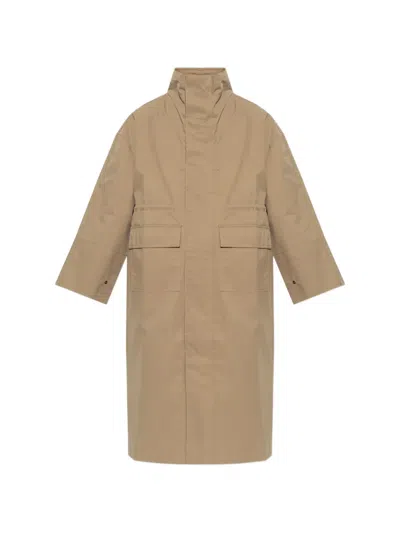 beige drawstring detail flap pockets oversized sleeves snap-button cuffs