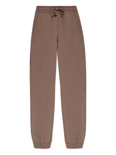 brown elasticated ankles drawstring waist side pockets embroidered logo organic cotton
