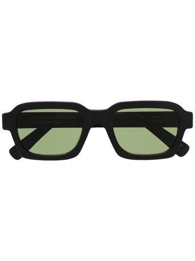 Black Caro rectangular sunglasses from RETROSUPERFUTURE featuring rectangle frame, tinted lenses and logo-debossed arm.