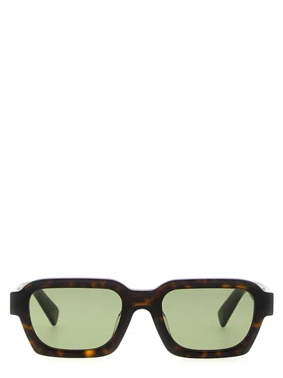 'Caro' tortoiseshell acetate sunglasses with wide and geometric silhouette, logo on the temples, square rod tips and corner circles in the lower half of the frame.. Colour. : Multicolor. Composition. : 100% acetate. Country Of Manufacture. : Italy. Dimension. : Lens Width: 52 mmFrame Side: 145 mm. MPN. : CARO3627GREEN. .