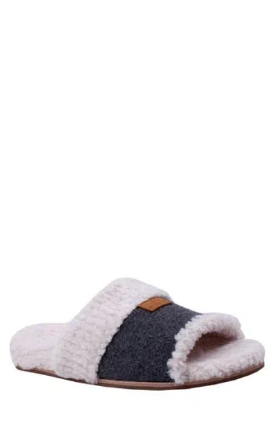 Juniper Orthotic Faux Shearling Trimmed Open Toe Slipper In Black