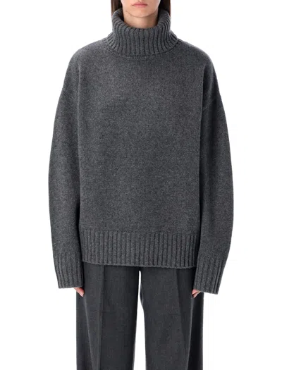 Rhea Heavy Grey Wool Turtleneck Sweater In Gray