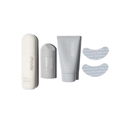 Get ready with rhode. Our set of four skin prep essentials provides dewy moisture to prime skin for better makeup application and create a smooth, glowy base. Peptide Eye Prep depuffs and brightens under the eyes, Glazing Mist refreshes skin for a next-level glow, Peptide Glazing Fluid hydrates and brightens, and Barrier Butter seals it all in with buttery, intensive moisture. Includes 4 products: Glazing Mist, Peptide Glazing Fluid, Barrier Butter, and Peptide Eye Prep in a style of your choice.
