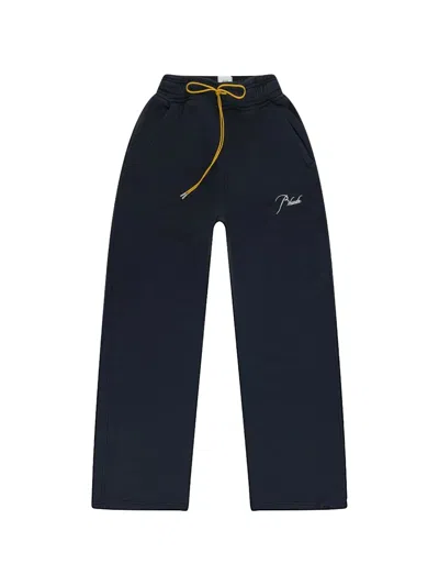 Rhude Men's Script Logo Sweatpants Highlights Navy blue Embroidered logo to the side Drawstring fastening waist Two side slit pockets Rear patch pocket Material Composition - 100% Cotton Manufacturer SKU - RHPS24PA16012372 Seller SKU - RHD-MBTM-0133 Made in United States