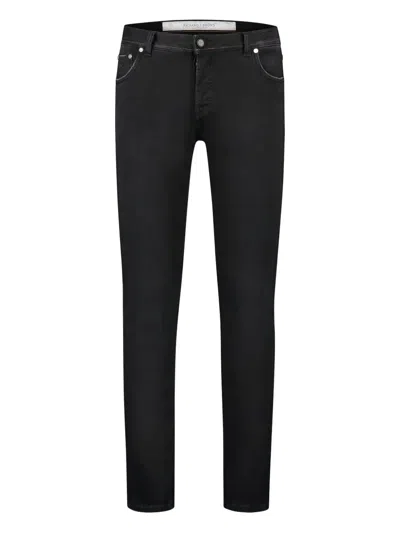 black concealed fly and button fastening belt loops classic five pockets rivet detailing