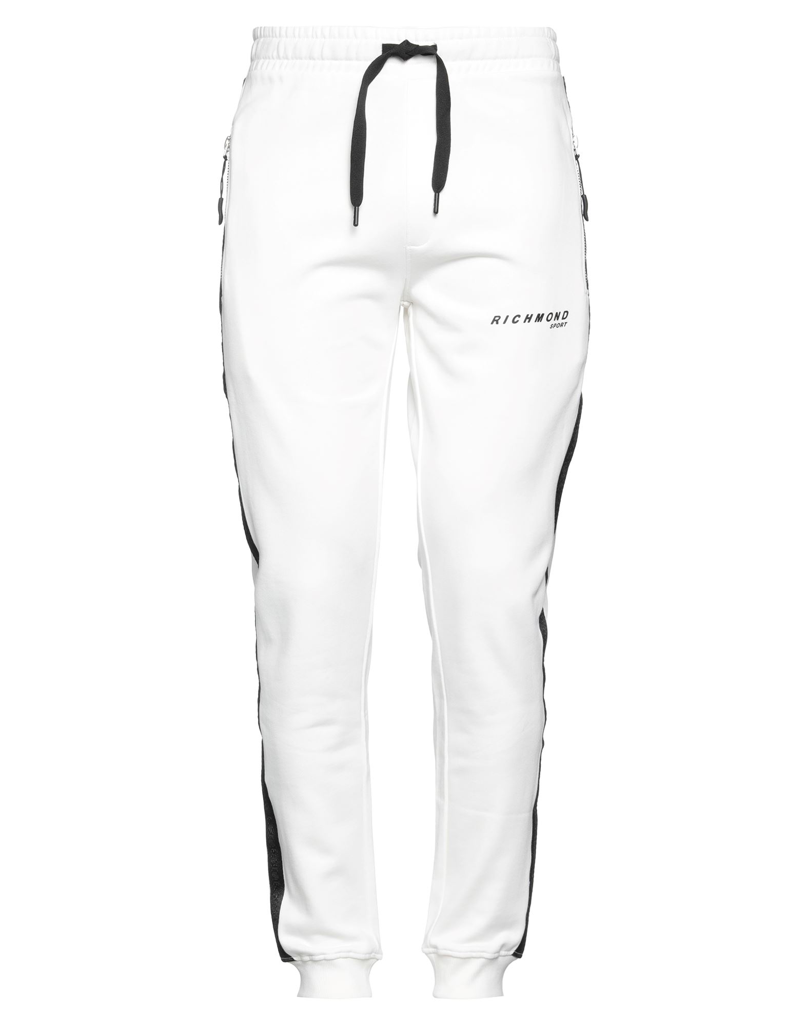 sweatshirt fleece, brand logo, side seam stripes, solid colour with appliqués, high waisted, elasticized waist, tapered leg, comfort fit, french terry lining, drawstring closure, with elastic bottom, multipockets, pocket with zipper, sporty , Color: White , Size: L