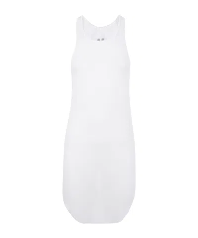 Rick owens basic rib white viscose tank top. Classic tank top crafted from ribbed white viscose and silk, featuring a halter neck, a sleeveless construction, the iconic central topstitching at the back, and the signature rounded hem.SpecificationValueSeasonSS26CompositionVISCOSE | 88%VISCOSE 12%SILKColorWHITEColor Code11Made InITALYISOITDepartmentMenSectionCLOTHINGSubsectionT-SHIRTS & TOPSSize InformationSTANDARDSize CodeSML