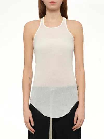 Rick Owens's Basic Rib Tank in Milk is a versatile and essential piece for any wardrobe. This tank offers a sleek silhouette and a comfortable fit, perfect for layering or wearing on its own. Composition: 88%Viscose-12%Silk- Sleeveless design Ribbed texture for added style Classic round neckline Subtle stretch for comfort Available in a neutral milk color Made in Italy Model is 178 cm and wears size 40 SKU: RP02E4101 RC 11