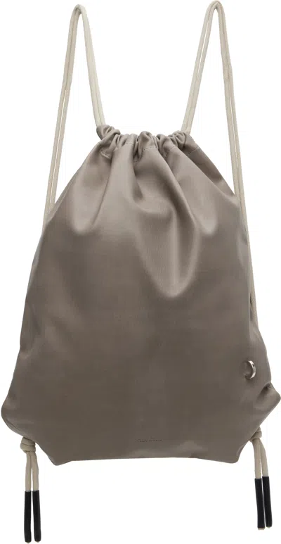 Adjustable braided rope shoulder strap with D-ring and embossed logo at front and drawstring closure.