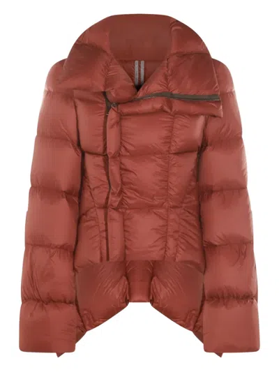 Rose wood down jacket from Rick Owens featuring high collar, long sleeves, padded, frontal zip fastening and asymmetrical hem. Composition: _, 100% Polyamide