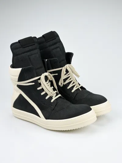 New Rick Owens Textured Calf Leather Geobaskets. Size 45. Comes With Original All: Box, Tote, White Laces, Black Laces, Insoles, Tags. One Of The Best Iterations Of The Classic Black White Geobaskets. The Uppers Are Constructed With A Firm, Textured Leather That Has A Brushed / Cracked Effect. If Treated With Care, These Will Develop A Beautiful Patina With Wear And Last You Many Years. New. Please Judge Condition From Photos Above All Else. No Returns, Refunds Or Exchanges. All Sales Final. Check Out Our Other Listings For More Rick Owens Footwear. | Rick Owens New Textured Leather Geobaskets Shoes in Black, Men's (Size 12)