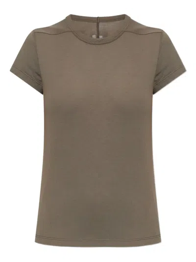 grey short sleeve crew neck ribbed neckline seam detail straight hem