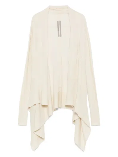 RICK OWENS Ribbed Asymmetric-hem Cardigan In Neutral