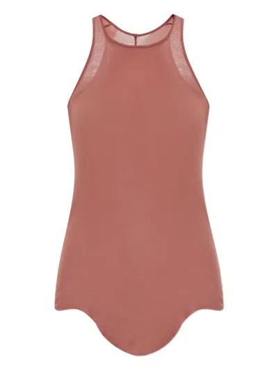 RICK OWENS LILIES Basic Tank Top in Mauve 100% viscose. Hand wash. Pull-on styling. Asymmetrical hem. Lightweight ribbed jersey fabric. ROWE-WS70. LI02E3101-RV. About the designer: California-born, now Paris-based designer Rick Owens is best known for his ability make grunge fabulous and give worn-in, distressed fabrics a glamorous appeal. Owens debuted his collection in Los Angeles in 1994 and marked his first New York runway appearance in 2002. The following year, he debuted a men's collection alongside his women's runway and then moved his label from the California coast to set up shop in Paris. He calls his look minimal and direct, giving humble pieces luxurious elements and creating a style that combines elegance and destruction. Over the course of his career, Owens has received several awards, including the CFDA's Perry Ellis talent award in 2002 and the Cooper-Hewitt National Designer award in 2007. To celebrate his 10th season, he launched a retrospective of his work in a book L'ai-Je Bien Descendue. He later launched Rick Owens Lilies, a lighthearted twist on his dramatic signatures.