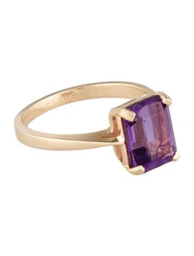 14K Yellow Gold Featuring 2.10 Carat Rectangular Step Cut Amethyst | 14K Amethyst Cocktail Ring, Women's 5.75