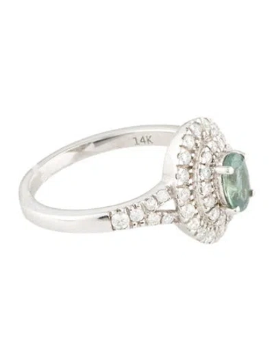 Rhodium-Plated 14K White Gold Featuring Faceted 0.13 Carat Oval Sapphire & 0.70 Carat Round Sapphire | 14K Sapphire Cocktail Ring, Women's 6