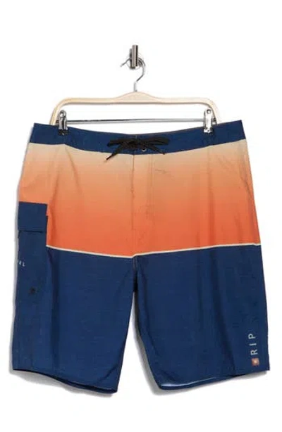 RIP CURL Dawn Patrol Colorblock Print Swim Trunks In Washed Navy