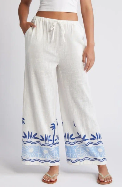 RIP CURL Santorini Border Print Palazzo Pants In Blue