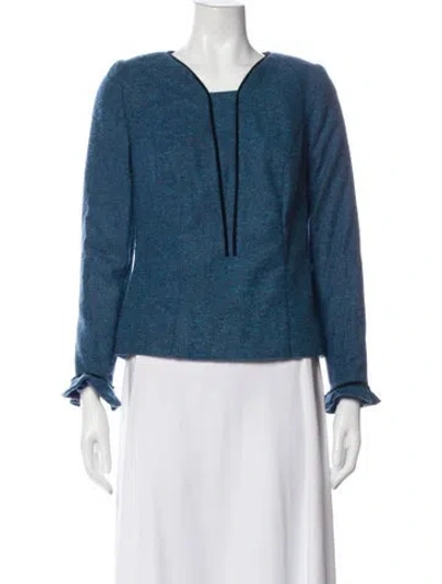 Ripetta Cashmere Jacket Blue Collarless Patch Pockets & Button Closure | Ripetta Cashmere Jacket in Blue, Women's S