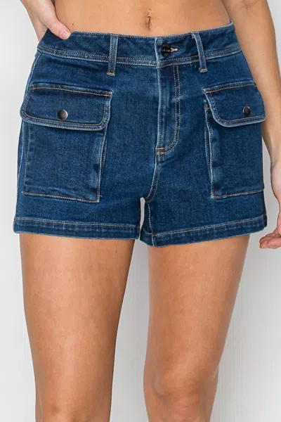 RISEN High Rise Cargo Shorts In Blue