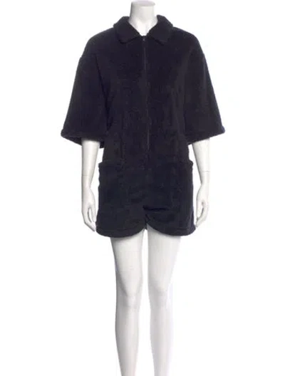 Rivet Utility Romper Blue Three-Quarter Sleeve with Collar Concealed Zip Closure at Front Fit: Jumpsuits and Rompers by Rivet Utility typically fit true to size. | Rivet Utility Romper in Blue, Women's L