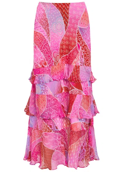 RIXO LONDON Rixo Preslee Patterned Crepe De Chine Midi Skirt In Purple