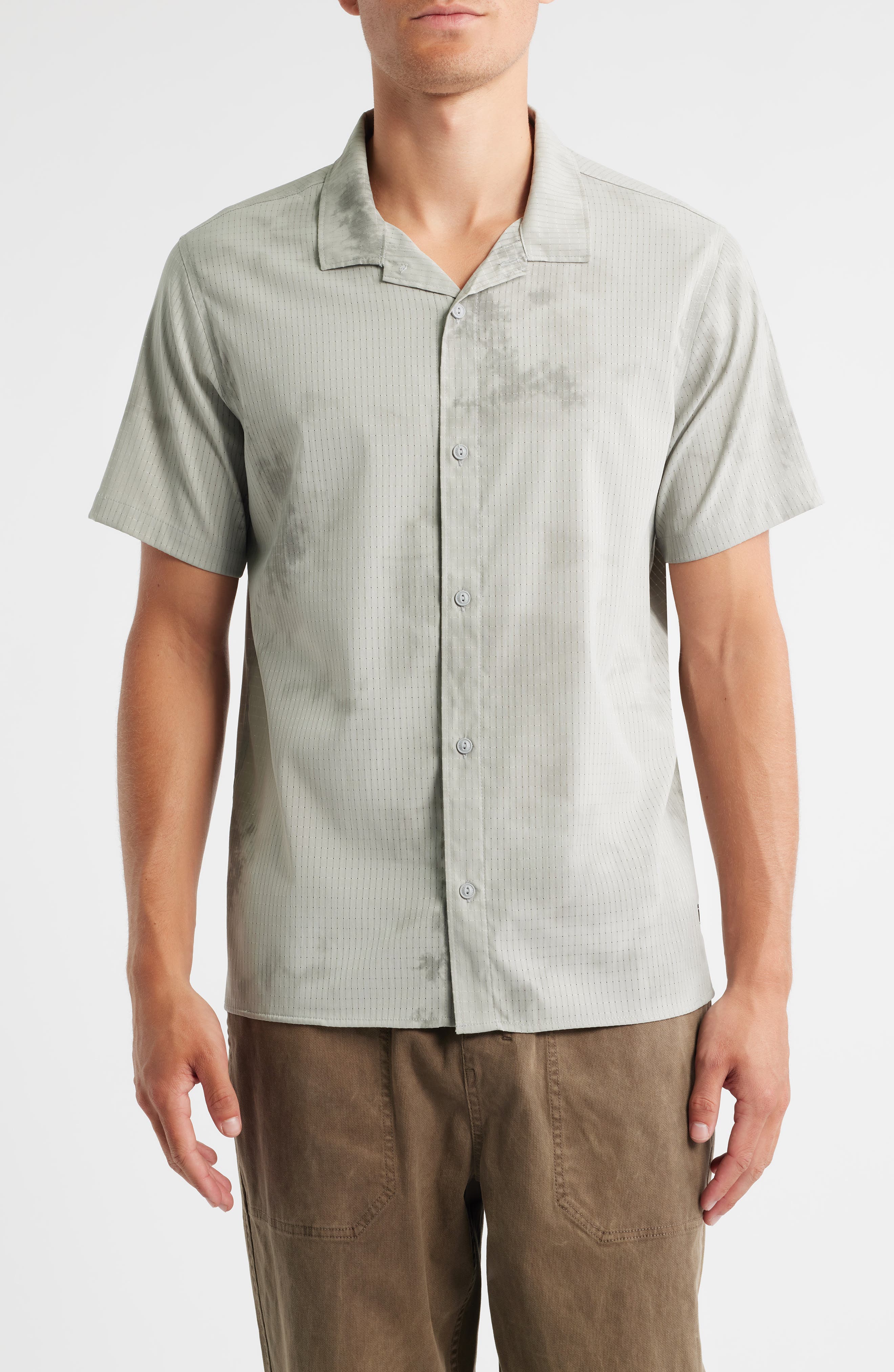 From the trail to the bar for a post-run cerveza, this shirt's performance features will keep you cool, comfortable and ready for the next adventure. It's cut from a finely perforated fabric that dries quickly and is woven with mechanical stretch to move and flex with you and your plans. Front button closure Spread collar Short sleeves Four-way-stretch fabric Moisture-wicking fabric engineered for dryness and comfort 68% nylon, 32% polyester Machine wash, tumble dry Imported