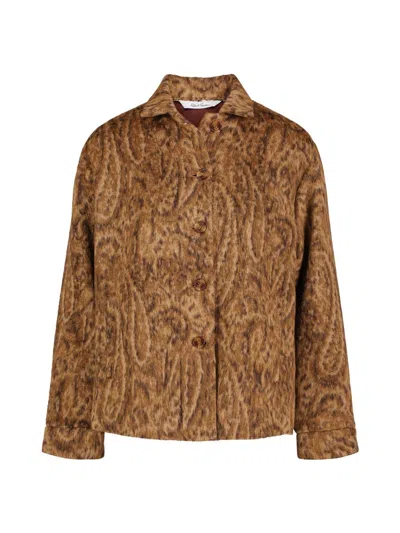 There's no denying that the Camille jacket is an exquisite piece. This style features an eye-catching leopard paisley print with a brushed coating. You'll love the relaxed fit of this shirt jacket silhouette and the dark brown satin liner at the interior. Pair with dark wash denim for head-to-toe chic. Point collar Button front placket Leopard print Brushed coating Shirt jacket silhouette Long two-piece sleeve Button cuffs Fully lined with dark brown satin Two front welt pockets 41% PC, 21% PL, 18% VI, 16% WO, 4%PA Dry clean only Imported