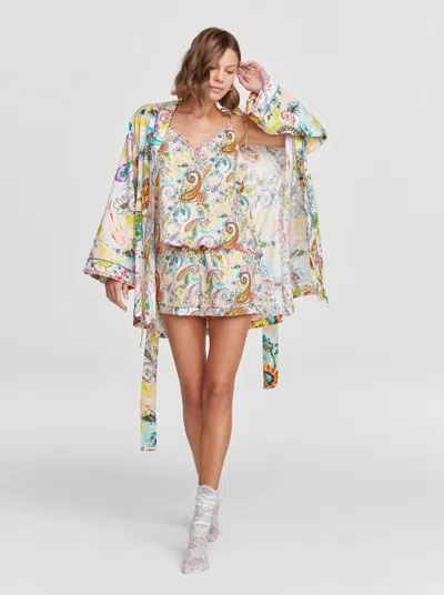 Whether you're just out of the bath or seated at your vanity, this chic robe has you covered. Featuring kimono sleeves and a self-tie belt. Notice the bold paisley print and the RG heart initial at the chest for a fun pop of color. Contrast trim at collar RG heart embroidery at chest Kimono sleeves Self-tie belt Knee-length hem 100% cotton Dry clean only Imported