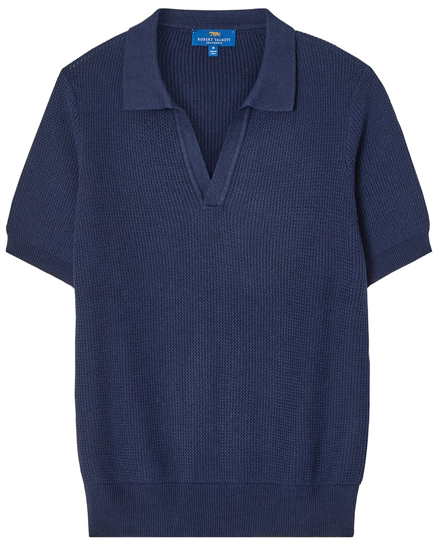 Introducing the Robert Talbott Knight Johnny Collar Shirt for men, perfect for adding a touch of sophistication to your wardrobe. This pullover sweater is crafted from 100% cotton in a timeless navy color and features a unique Johnny collar design. Made in Italy, this pullover is not only stylish but also easy to care for with its machine washable fabric. Elevate your everyday look with the Robert Talbott Knight Johnny Collar Shirt.
