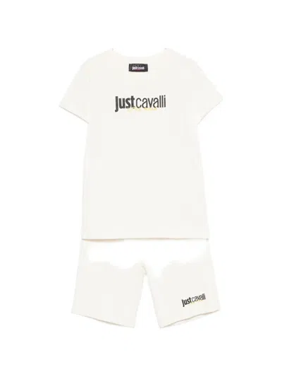 ROBERTO CAVALLI Kids' Drawstring Short Set In Neutral