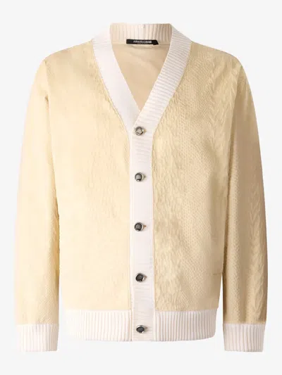 ROBERTO CAVALLI Python-print Cardigan-style Sweatshirt In Light Beige