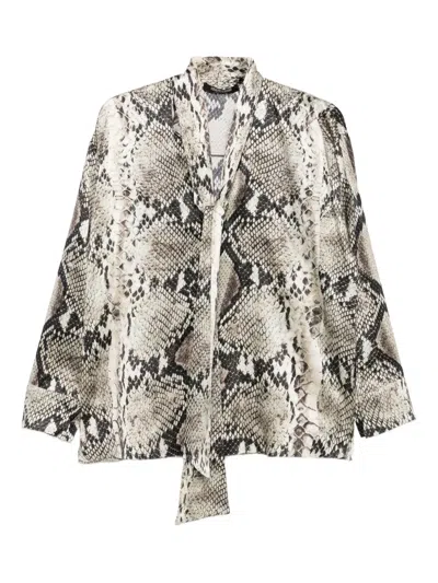ROBERTO CAVALLI Python Printed Silk Neck-scarf Blouse In Neutral