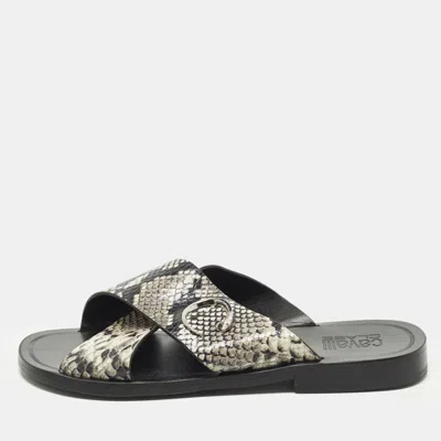Pre-owned Size 42 Two Tone Python Embossed Leather Criss-cross Flat Slide In Black
