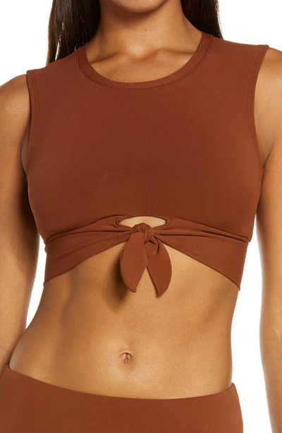 ROBIN PICCONE Ava Longline Knot Front Bikini Top In Cocoa