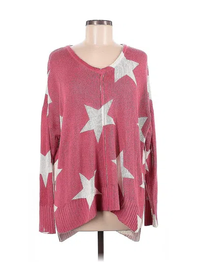 Rock & Roll Denim Pullover Sweater, Size: Large. Item Details: Pink, Stars Pattern, V Neck, Long Sleeve, Women's Tops, 100% Acrylic