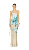 ROCOCO SAND Strapless Maxi Dress In Beige Blue