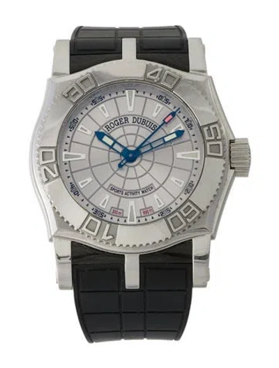 Easy Diver Collection46mm Case Dimension Stainless Steel Automatic Movement Unidirectional Rotating Bezel Silver Dial Exhibition Caseback Black Rubber Strap Deployant Clasp Includes Manufacturer's Box | Roger Dubuis Easy Diver Watch